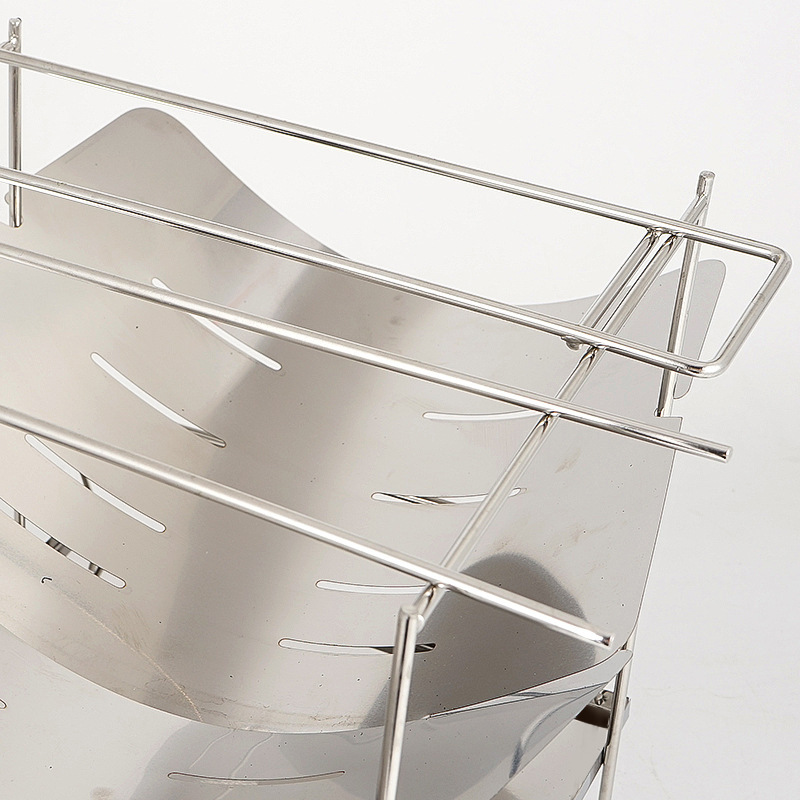 ソロ野営に最適な焚き火台 ソロ仕様の軽量コンパクト設計モデルです。 薄型に折りたためる組み立て式で持ち運びに便利な焚き火台として活躍します。 五徳部分は多段階調整が可能で、調理器具の大きさに合わせて高さを変えられます。 通気性の良い構造で燃焼効率に優れ、灰受け皿付きで後片付けも簡単です。 一人用の野営や登山での焚き火調理に最適な道具です。
